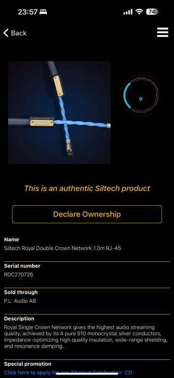 I haven’t registered ownership so next owner will get lifelong warranty with Siltech.