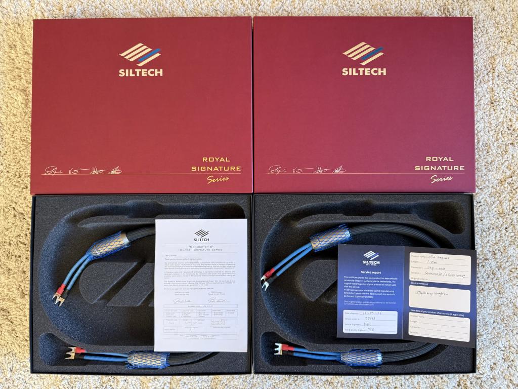 * Hochwertiges Lautsprecherkabel von Siltech aus der G6-Serie (Silber/Gold).