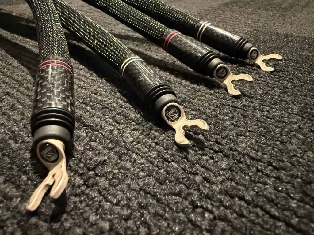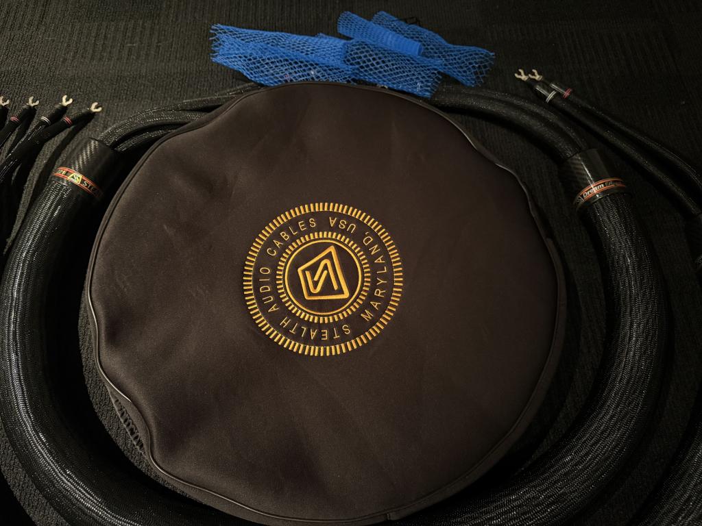 Stealth Audio Cables Dream Royale V.19, 65 millimeters in width – which is two and a half inches – makes it the largest loudspeaker cable Stealth Audio currently carries. 32 individual runs inside the Royale featuring variable cross-section along the cable (STEALTH VariCross) designed to improve impedance matching between the source (power amp) and the receiving end (loudspeaker) which considerably improved midbass and deep bass performance, without any compromise whatsoever in the midrange and treble definition and clarity.