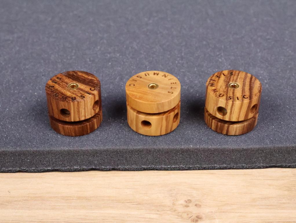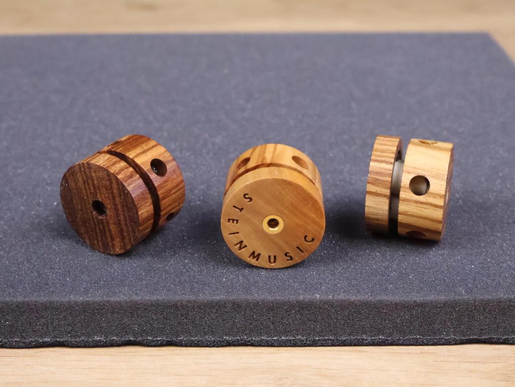 Super Naturals Signature are highly sophisticated stands for components and speakers. Two each are made of African zebra wood, one of Italian olive wood. They contain several ceramic elements that are coupled to the woods with vacuum-impregnated felt pads. In addition, they still contain a specially adapted version of SteinMusic E-pads, which work according to the principles of quantum physics. Ceramic has a very fast energy exchange. The carefully selected wood gives the overall work a very natural sound. The same goes for the quantum physical approach. 130 steps are necessary to make these saucer feet. Sonically, they have a comparable signature to the simpler Super Naturals, but give the music a much wider scope to unfold.