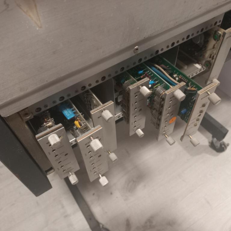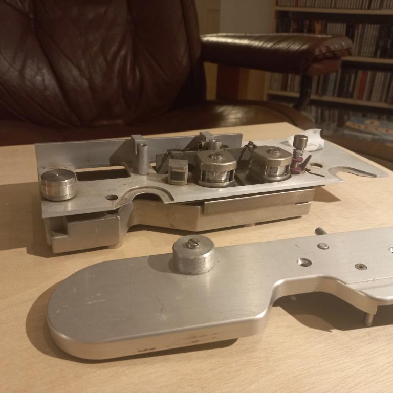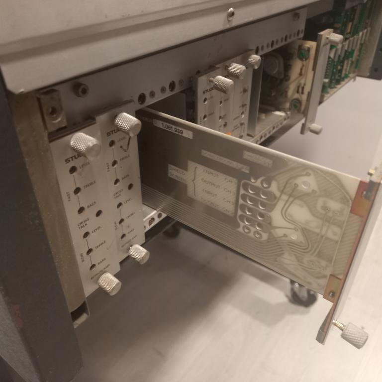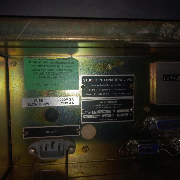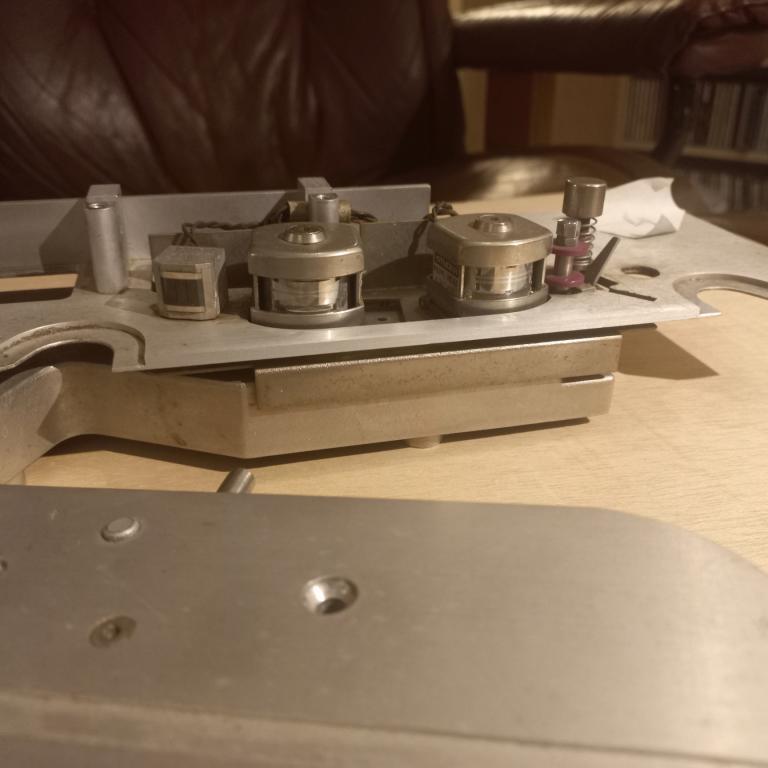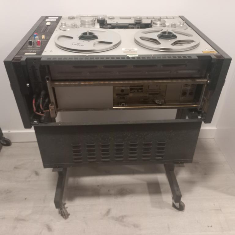 The machine is complete and was working last time I connected it ten years ago. However it surely needs recapping and refurbishing, it was not checked and tested this time. It was kept in storage in a dry place for the last ten years. The head block has stereo heads and they were now measured 1.317.130 around 8 mH and 1.317.225 and 150 mH per section, still many hours of life on them.