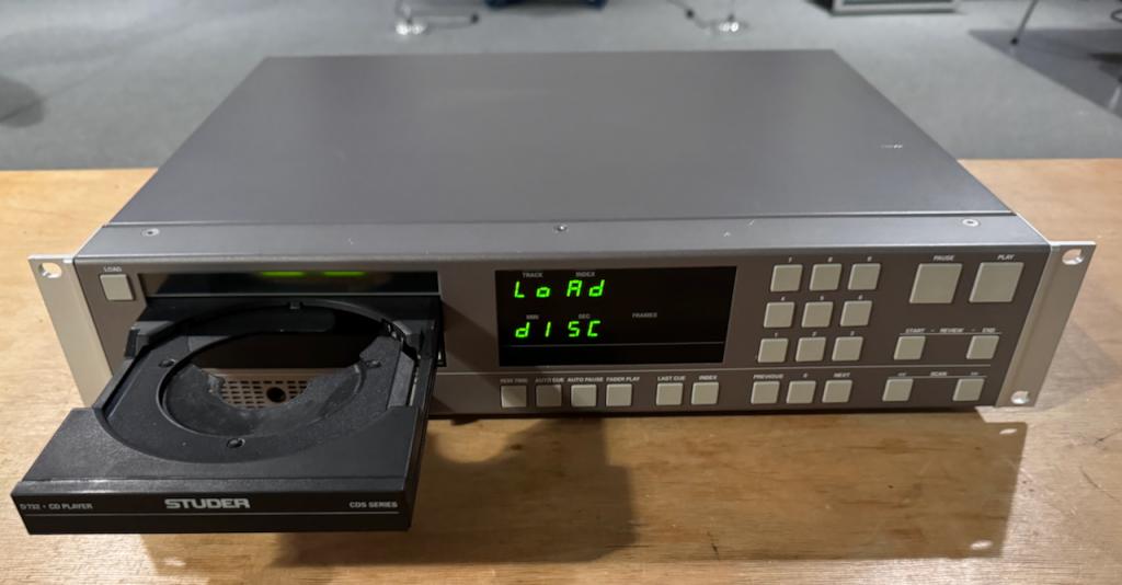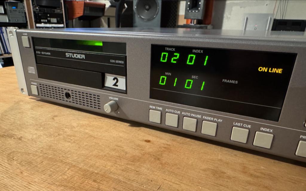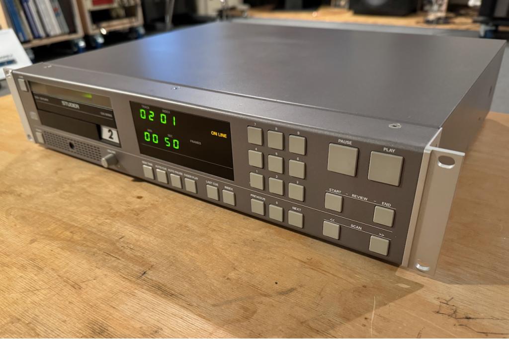 Professioneller CD-Player von Studer, erstklassiger Klang und viele Features (Auto Cue, Auto Pause, Fader Play, eingebauter Monitorlautsprecher, digitaler Ausgang, Clock in etc.). Funktioniert als CD-Player einwandfrei. Kann natürlich auch selbstgerannte CDs abspielen.