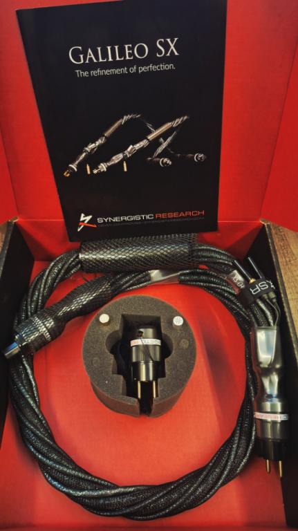 For sale here are two Synergistic Research Galileo SX power cables, 1.5 m long, in new condition, including original packaging and all accessories (silver and gold fine tuning module and grounding plug). The price is per cable.