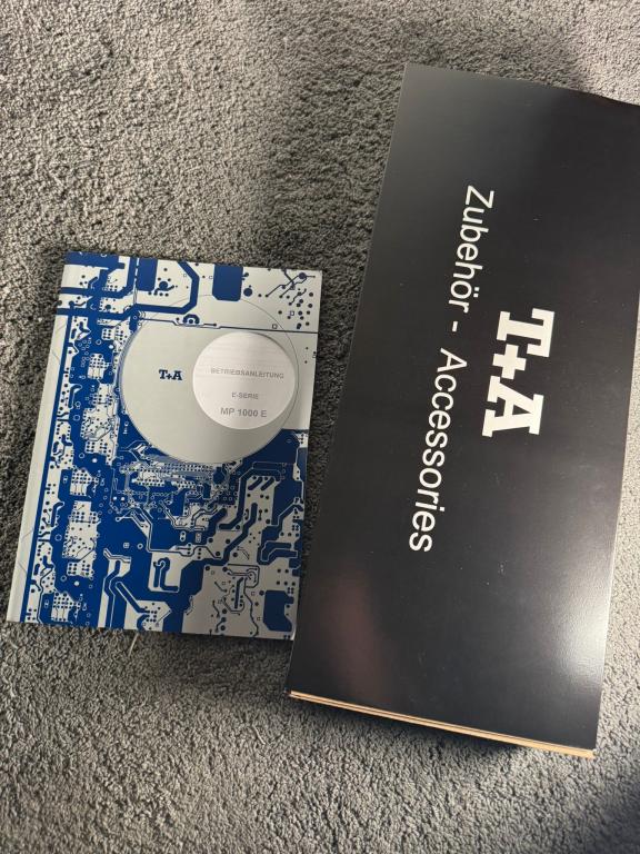 Im Lieferumfang enthalten ist: T+A MP 1000 E, Netzkabel, Fernbedienung, Anleitung, Antenne und die originale Verpackung.