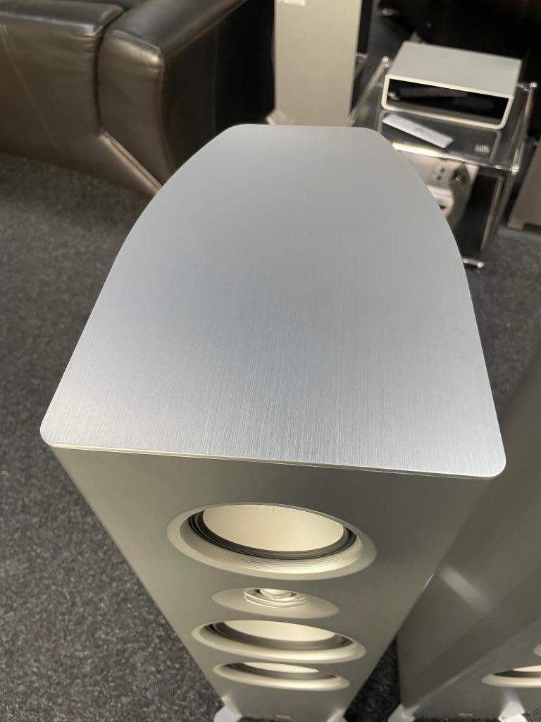 Schlanker und klangstarker Standlautsprecher mit Aluminiumgehäuse. Das Zubehör inkl. originaler Verpackung ist vollständig vorhanden. AUfgrund eines Modellwechsels verkaufe ich diese Ausstellungsstücke, welche nur gelegentlich vorgeführt wurden. Die Lautsprecher können gerne nach Terminabsprache hier im Ladengeschäft probegehört werden. Aufgrund von Größe und Gewicht bitte nur Abholer, evtl. können die Lautsprecher nach Absprache im Großraum Hamburg angeliefert werden.