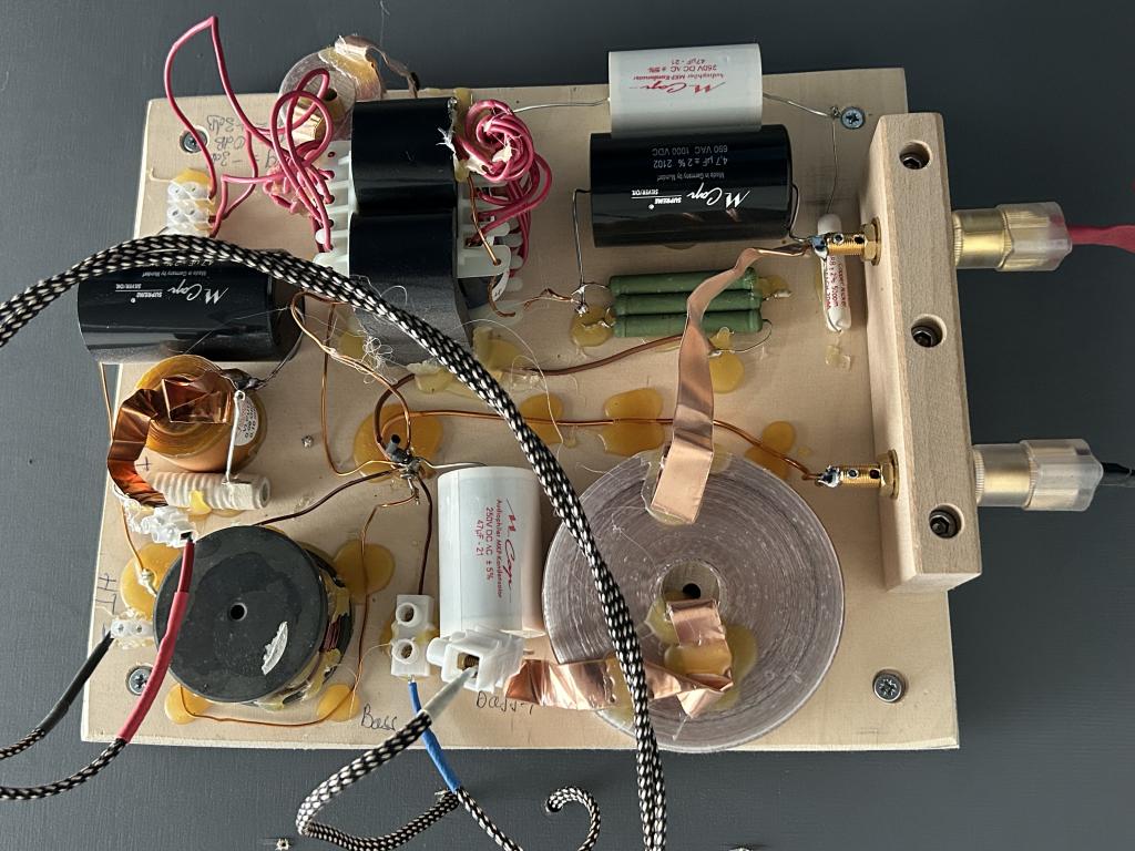 Die Frequenzweiche wurde in dieser Zeit mehrfach überarbeitet mittels Hören und Messungen.