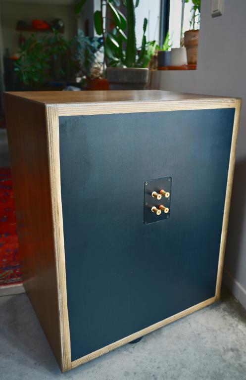 Constructed from 30mm plywood with a walnut veneer, horn machined from a solid block using CNC machining (originally from Athosaudio).