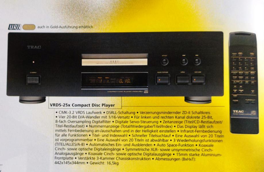 Zu dem Gerät braucht man nicht viel sagen, er gehört zu den besten jemals gebauten CD-Playern mit high-endigen Klang und und einer höchst aufwendigen mechanischen Verarbeitung. Jeder der die VRDS-Laufwerke kennt, weiß sie zu schätzen.