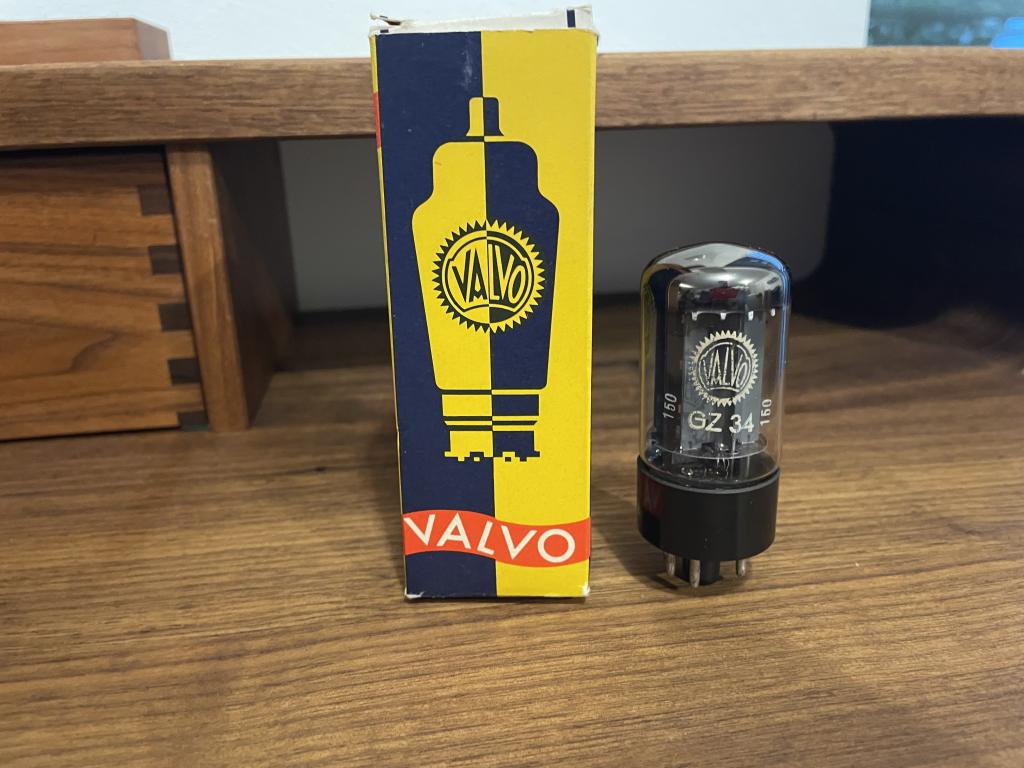 5) Valvo GZ34 (Serial 150), NOS, NIB, Code: f32 b4a3, Made in UK (Mullard Blackburn), 200 EUR
