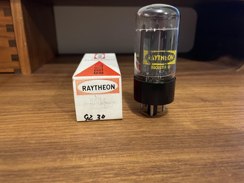2) Raytheon GZ34/5AR4, NOS, NIB, Made in Japan by Matsushita (with Mullard Machines), similar sound and build to Mullard NOS 1970's, 150 EUR