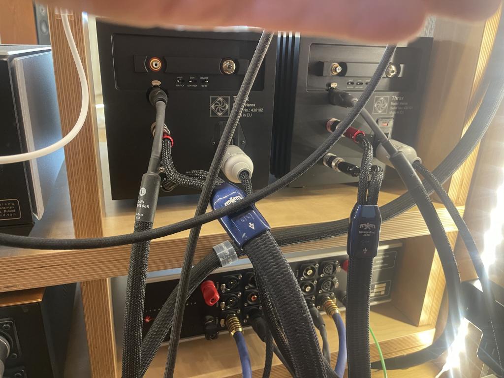 Offered for sale is a pair of THRAX Heros reference mono power amplifiers in black finish,