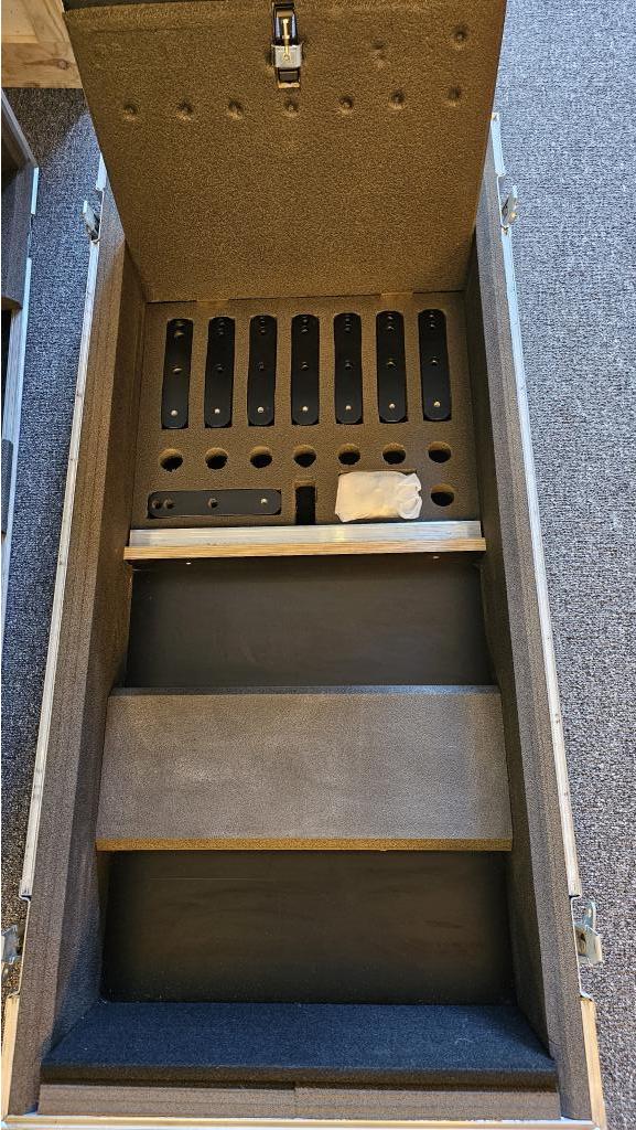 Optional: 8 x Triggerstangen aus massivem Aluminium, schwarz strukturiert oder hochglanzpoliert, die Position der Variofüße kann parallel oder nach hinten geneigt montiert werden, sowohl auf der Vorder- als auch auf der Rückseite