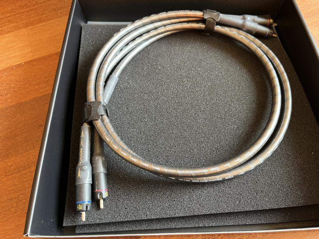 Biete hier mein Tiglon Cinchkabel an, in 1m Länge. Rechnung vom Händler ist vorhanden, Kaufdatum war Dez. 2021. Die Kabel sind unbeschädigt und funktionieren natürlich einwandfrei. Die Originalverpackung ist auch noch vorhanden, siehe Foto. Aufgrund der Magnesiumabschirmung ist das Kabel relativ steif, das ist soweit aber auch der einzige negative Aspekt. Anbei eine von DeepL automatisierte Übersetzung der Beschreibung vom Hersteller (Webseite tiglon.co.jp).