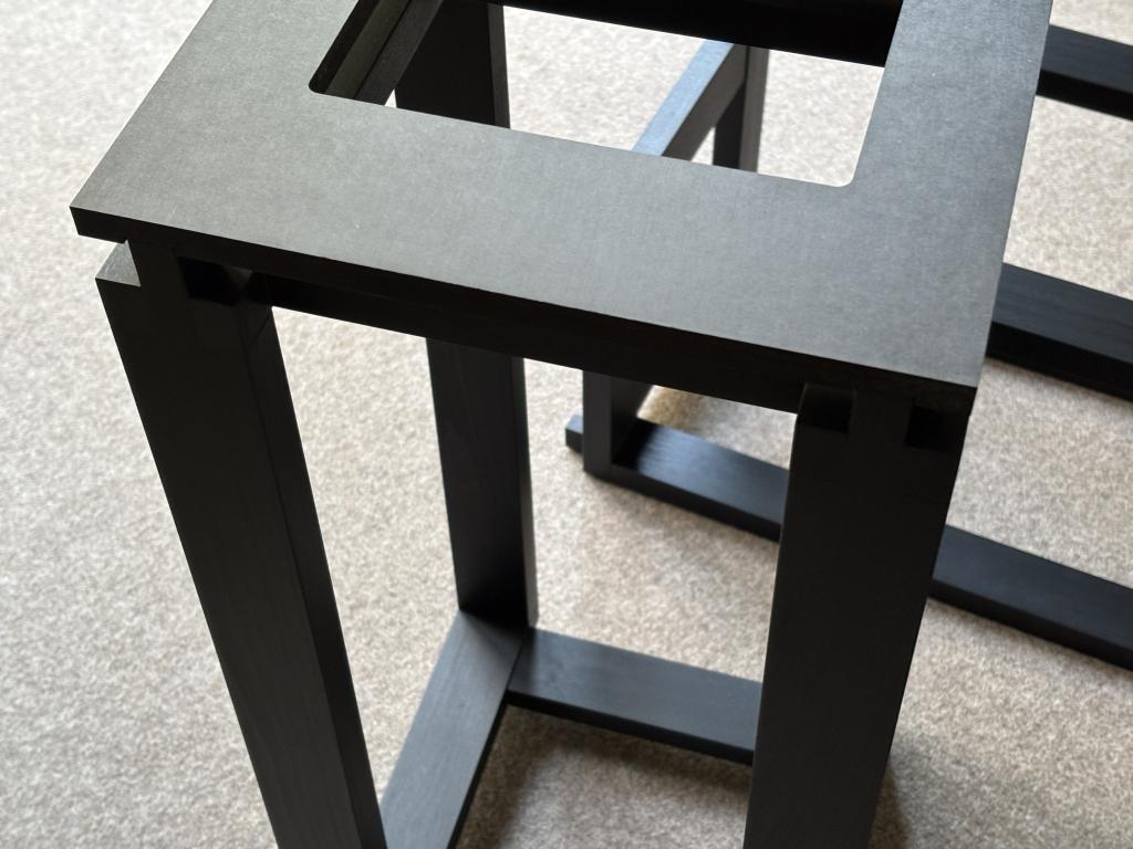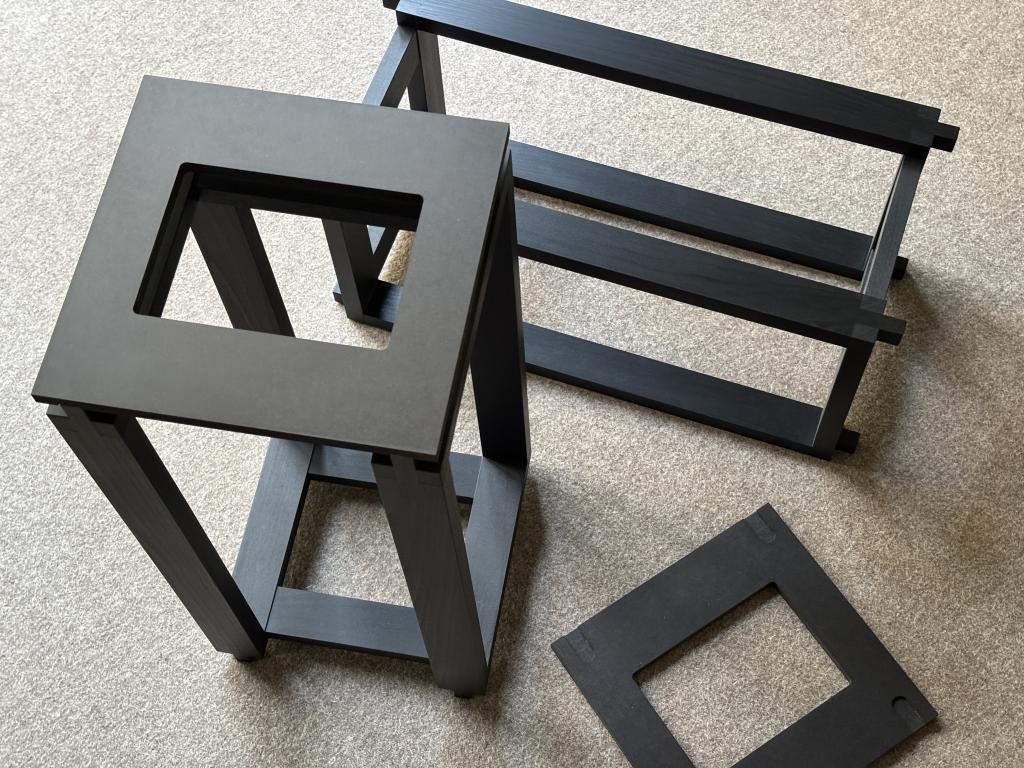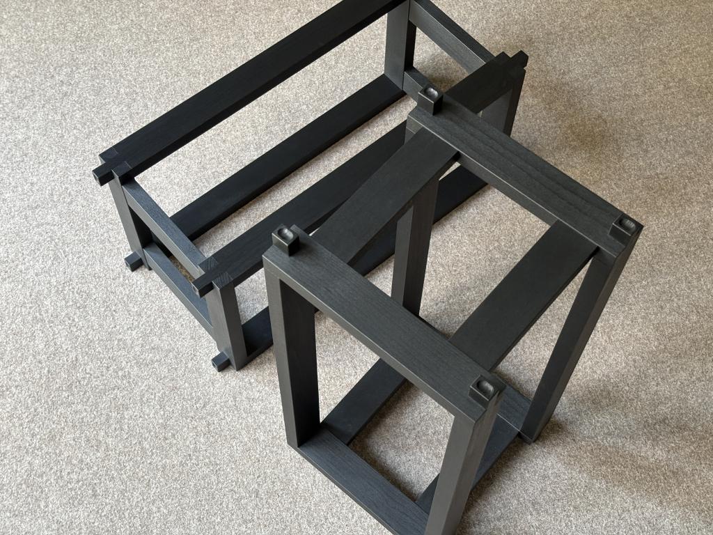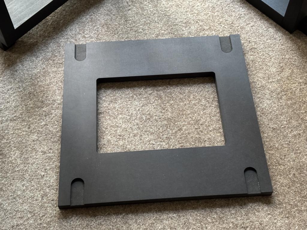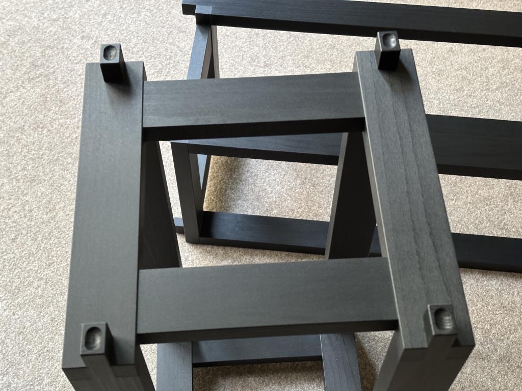 Das Angebot ist inklusive eines Paars Adapterplatten aus 'Swiss CDF'. Diese hatte ich CNC-fräsen lassen um einen anderen Typ Lautsprecher aufstellen zu können. Das gefiel mir jedoch optisch nicht und wurde nie verwendet. Die Ständer wurden circa ein Jahr als solche benutzt und standen danach sorgsam abgedeckt im Hörraum 'herum'. Das ist zu schade und deshalb werden sie jetzt zum Kauf angeboten.