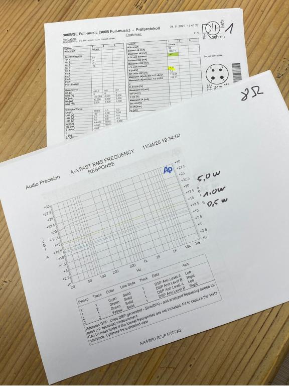 Ich habe noch einen Satz (zwei Stück) Electro-Harmonix 300B Gold und eine RCA 6SN7 GTB in gutem Zustand, welche ich mit dazu gebe (inkl. Messeprotokoll).