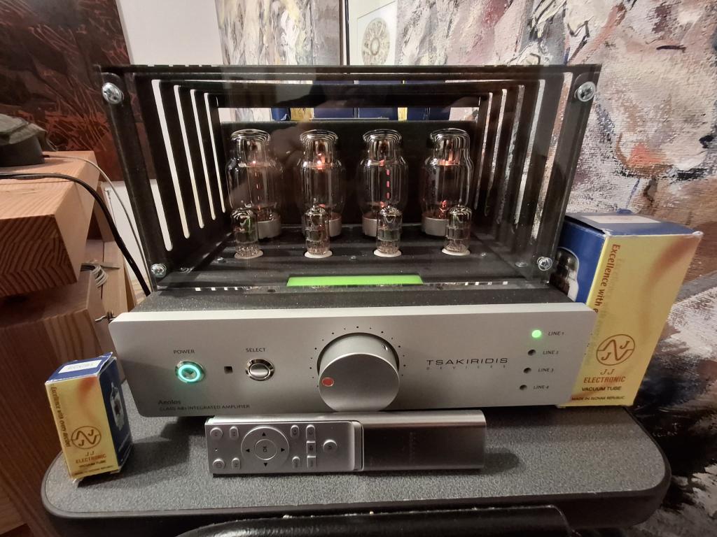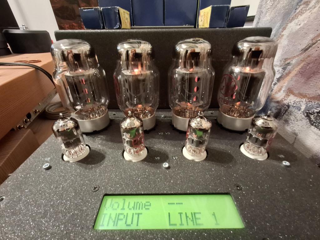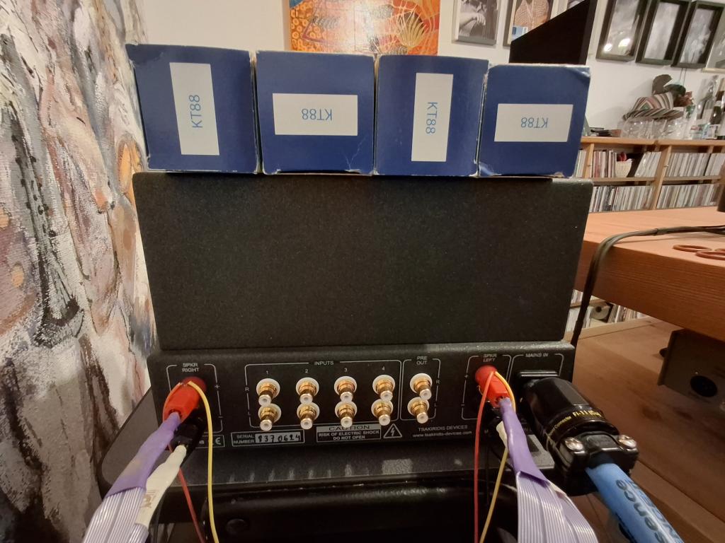 I am selling an excellent push- pull tube amplifier with 4x JJ Electronics KT88 power tubes and with JJ Electronics ECC81 preamp tubes in mint condition. On request you can get 4x Psvane EL34-Z instead KT88. All tubes are matching quad and very barely used, max 200 hours.