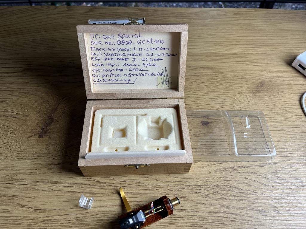 Van den Hul MC ONE Special. Alter unbekannt. Serien Nr. 8830 GC5L100. Habe das System 2019 gebraucht beim Händler Audio Creativ gekauft. Das System war in 2019 direkt nach dem Kauf bei Van den Hul zur Reparatur, da der Nadelträger locker war und neu fixiert werden musste. Wollte schon immer ein Van den Hul in meiner Sammlung haben und habe mit dem System gerne gehört.