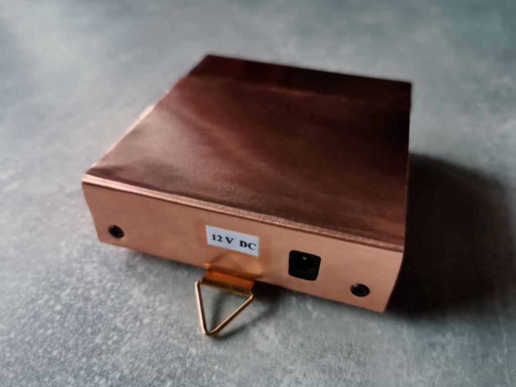 Die Metallgehäuse sind innen + außen ergänzend aus starkem Kupferblech, um vorbeugend Ein- und Abstrahlungen von Störsignalen zu verhindern.