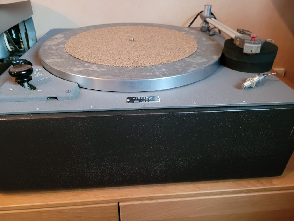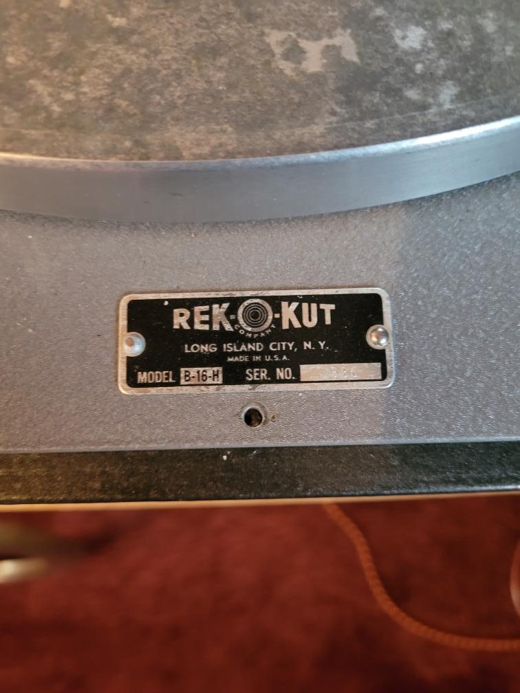 Hello, I am selling a Rek-O-Kut 16 friction wheel record player in very good condition. Was overhauled in a specialist workshop last year. 120 V device. Transformer included. Includes tonearm A 1-500 US tonearm with the strange nickname "Baton". The model A 1-500 General Electric 16 inch from 1954
