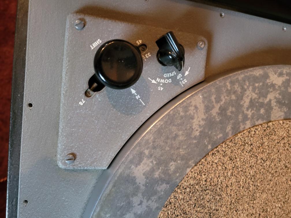 Bonjour, je vends un plateau tournant à roue à friction Rek-O-Kut 16 en très bon état. A été entièrement révisé dans un atelier spécialisé l'année dernière.) Appareil 120 V. Transformateurs inclus. Comprend un bras de lecture Un bras de lecture 1-500 US portant l'étrange surnom de « Baton ». Le modèle A 1-500 General Electric 16 pouces de 1954