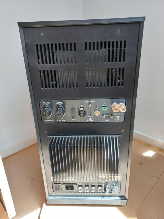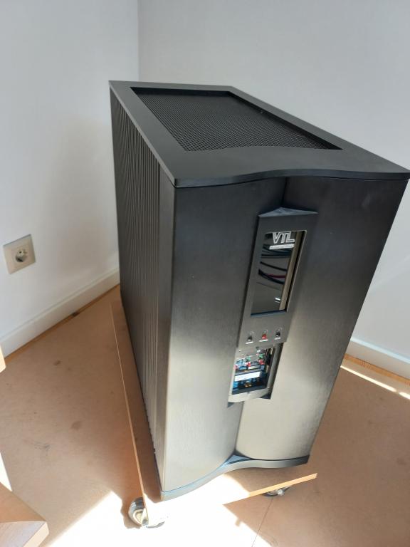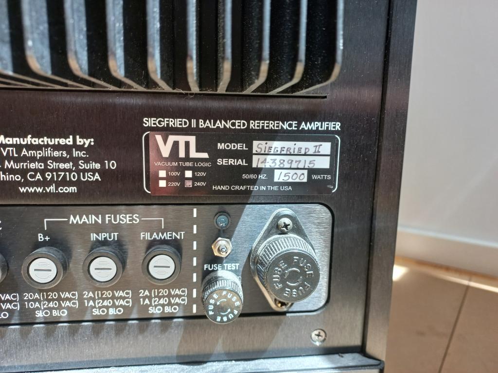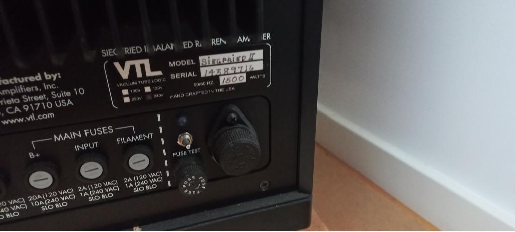The amplifiers were measured for power and distortion. The amplfiers have less than 3000 hours operation - VTL hour counters are not resettable - and were just re-tubed with Gold Lyon matched KT88's from TheTube Doctor - new tubes have less than 200 hours operation.