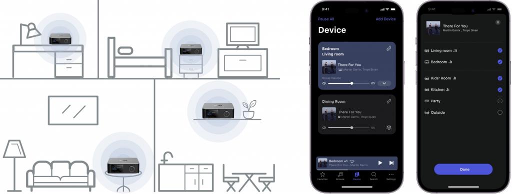 Streamen Sie kristallklare Musik mit bis zu 24 Bit/192 kHz von Plattformen wie Spotify, Amazon Music, TIDAL, Qobuz oder Ihrer eigenen Bibliothek. Genießen Sie lückenlose Wiedergabe und hervorragende Klangqualität. Personalisieren Sie Ihr Audio mit erweiterter Raumkorrektur und unabhängigen EQ-Einstellungen, die auf Ihren Raum zugeschnitten sind.