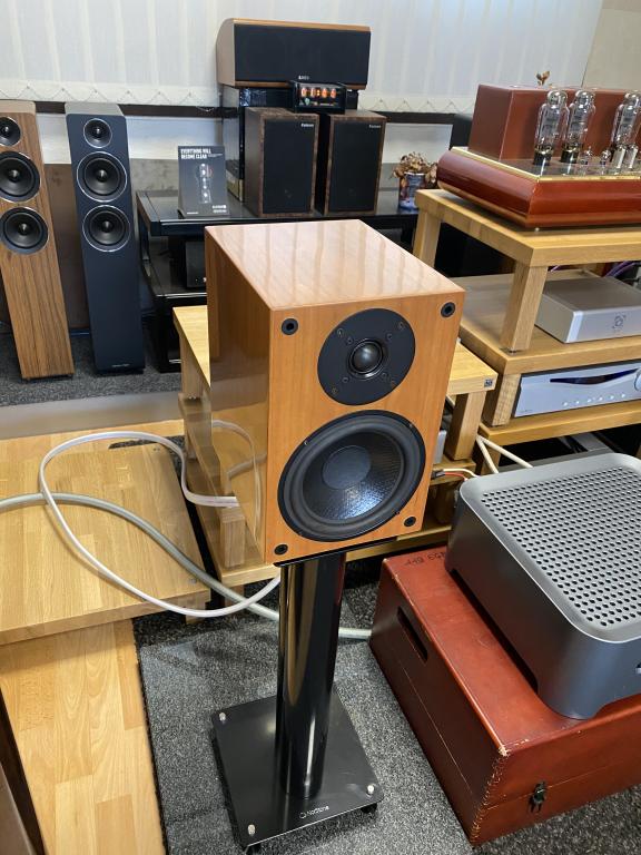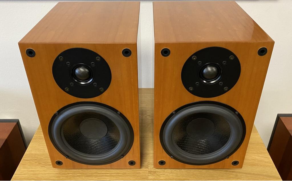 Hervorragend klingende Regallautsprecher. Kirschholz-Finish. Inklusive Originalverpackung und Bi-Wire-Kabeln. Ohne Ständer. Die Lautsprecher sind in ausgezeichnetem Zustand. 7 Jahre alt.