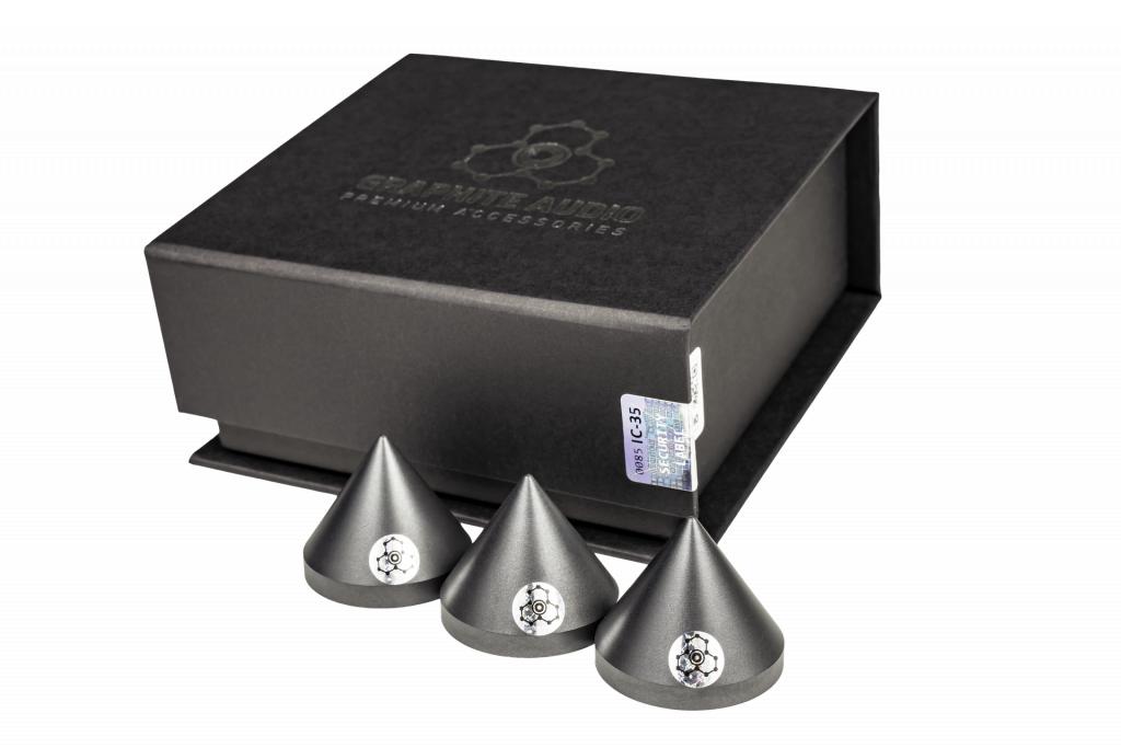 Wir haben gelernt, dass jedes Soundsystem ganzheitlich behandelt werden muss, da selbst kleinste Details eine entscheidende Rolle bei der optimalen Wiedergabe der Tonträger und der Unzufriedenheit des Hörers spielen. Da wir mit den auf dem Markt verfügbaren Lösungen nicht zufrieden waren, hatten wir die Suche nach einem alternativen, natürlich klingenden Mittel gegen allgegenwärtige Vibrationen aufgegriffen. Wir waren nie der Enthusiast von Anti-Vibrations-Zubehör aus Metallen, Stahl, Keramik oder Glas aufgrund ihrer Neigungen, bestimmte Frequenzen zu färben. Es hatte fast 3 Jahre Tests von mehreren verschiedenen Racks oder benutzerdefinierten Materialien in zahlreichen Variationen gebracht, bis wir schließlich entdeckten, dass das Hinzufügen von Graphit zu einem einzigartigen Polymer das natürlichste klingende Material für unser Zubehör liefert.