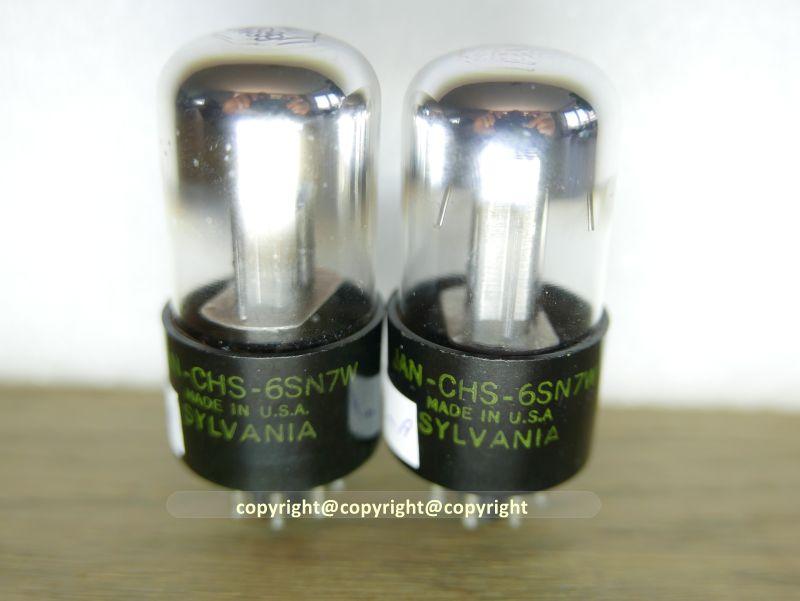 Sylvania JAN-CHS-6SN7W Navy Blackplates Tallbase rare 2 Hole 'Green Bad Boy'.