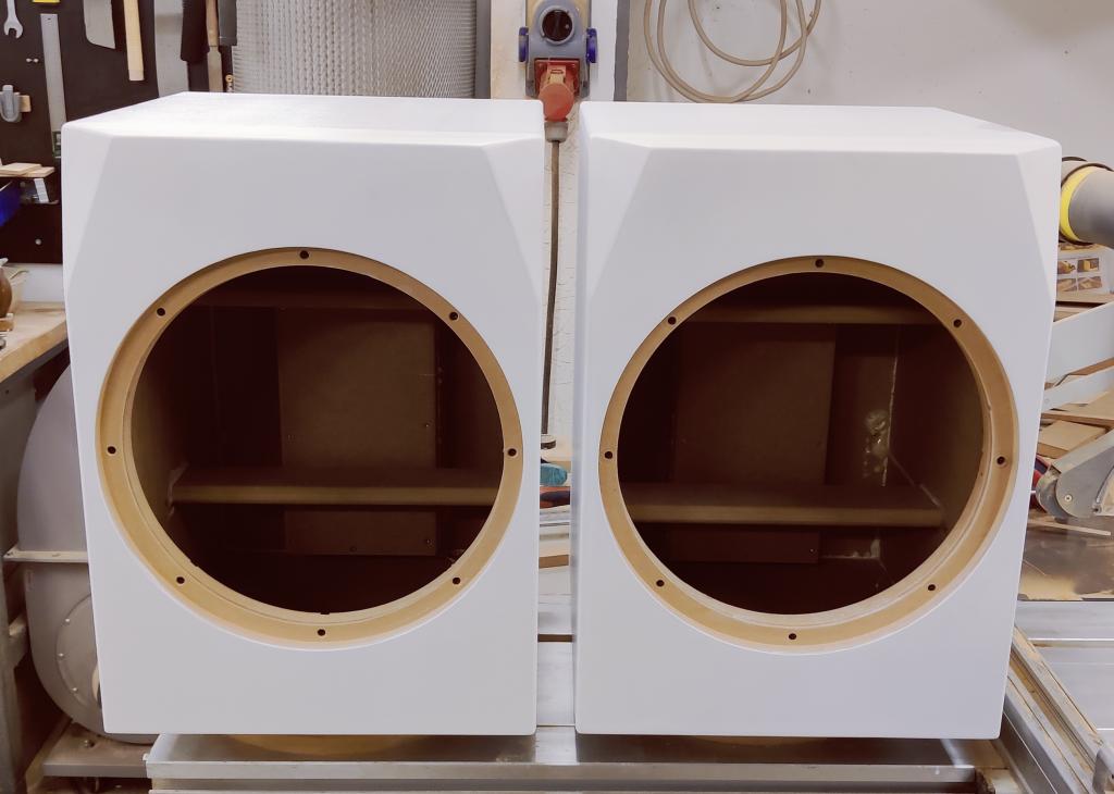 Optisch ist zu erwähnen, dass ich die Schaumstoffumrandung entfernt habe, um die Chassis nicht so tief ins Gehäuse einlassen zu müssen. Ansonsten hätte sich der Rand an der Stoffabdeckung abgezeichnet.