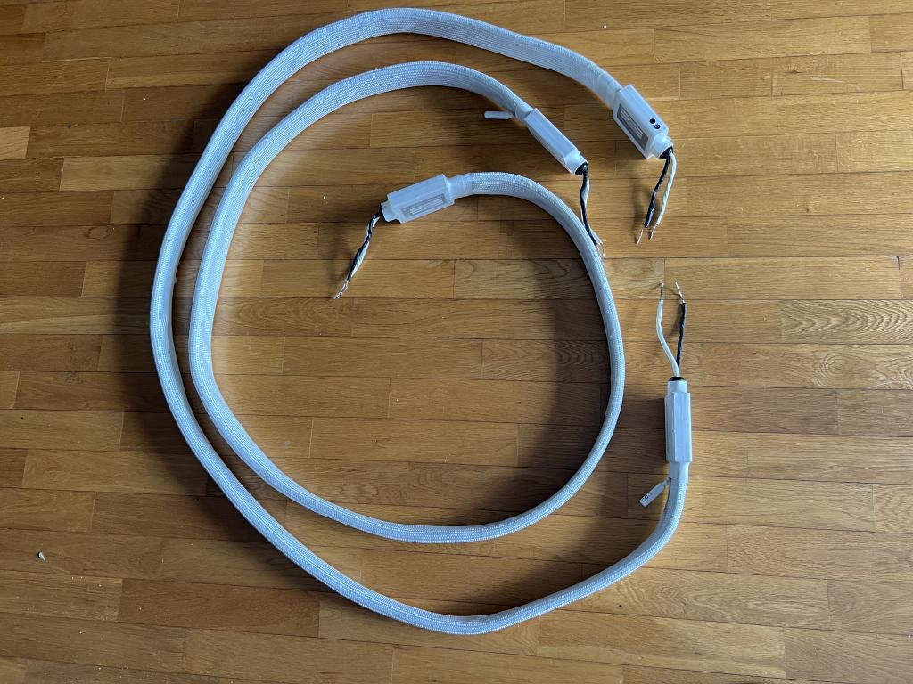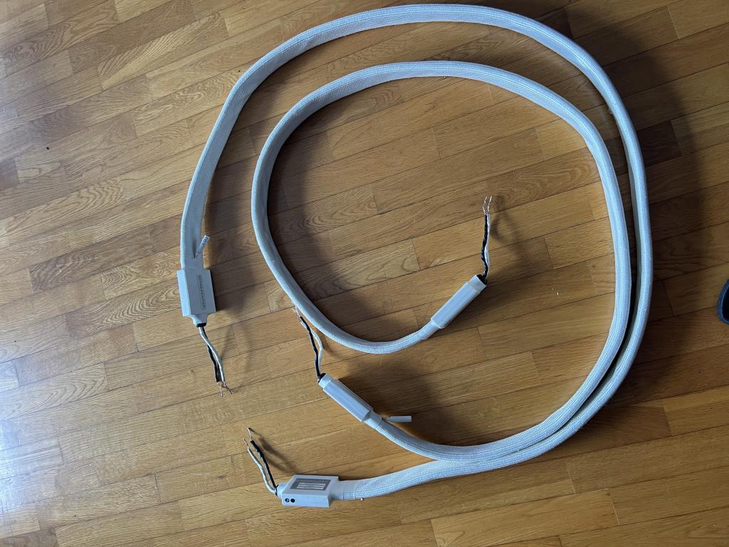 I am offering for sale a pair of Schnerzinger Reference 2.000 speaker cables in perfect working condition. The cables show some minor cosmetic signs of normal use, consistent with careful ownership in a dedicated high-end audio system, but they are fully functional and perform exactly as intended.