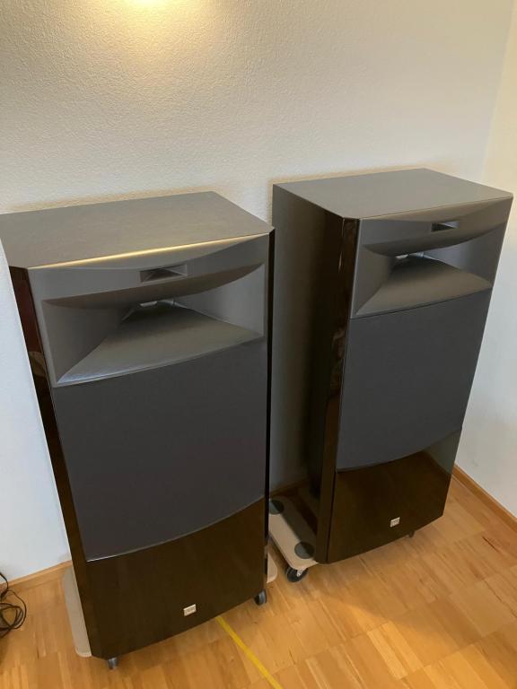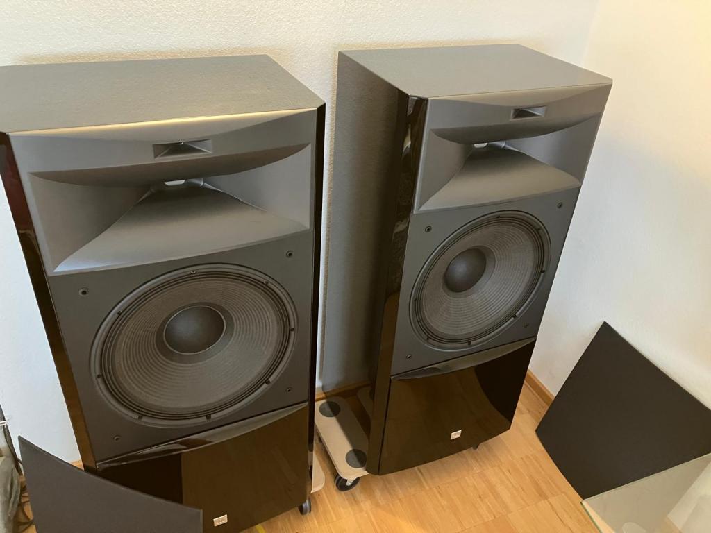Fantastic speakers in pristine condition, complete with all original accessories. Purchased in July 2023, I am the first owner. Due to their weight, delivery must be on a pallet (pallet included) or picked up in person. Shipping is not included in the price.