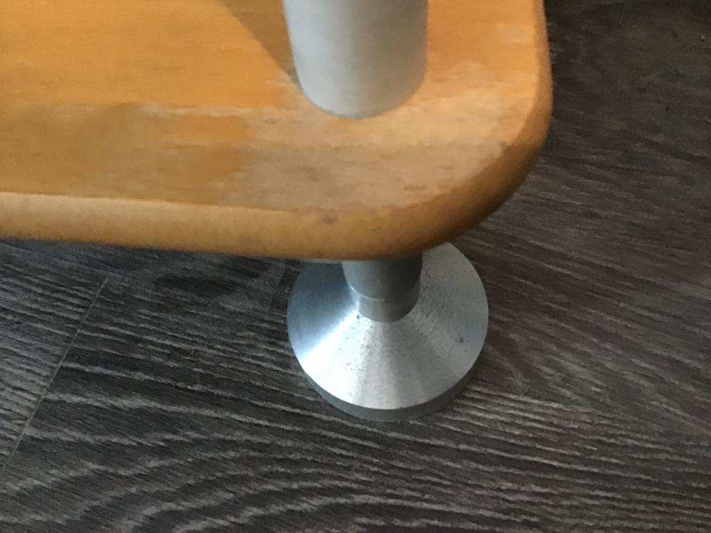 Es ist nicht mit Spikes ausgerüstet, sondern mit Parkett schonenden Blöcken aus Aluminium. Alle drei Füße sind höhenverstellbar, so dass sich das Rack sehr einfach in Waage ausrichten lässt.