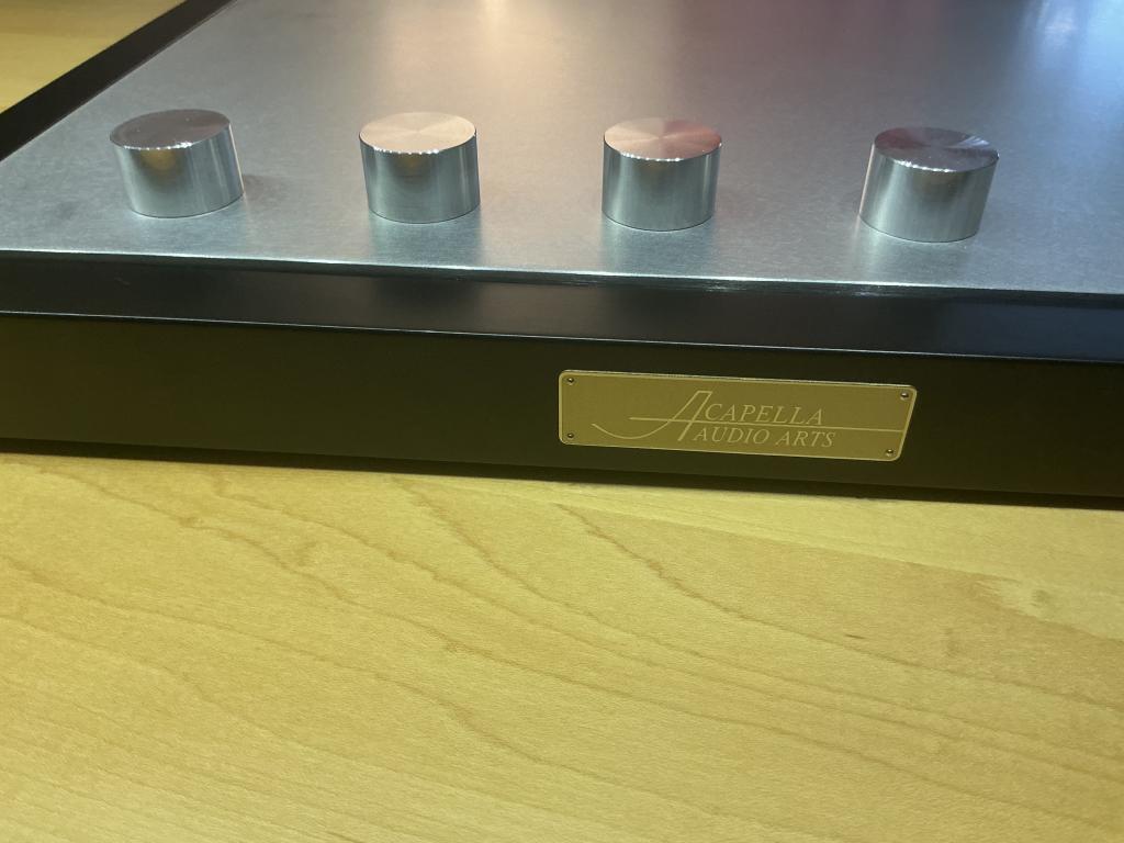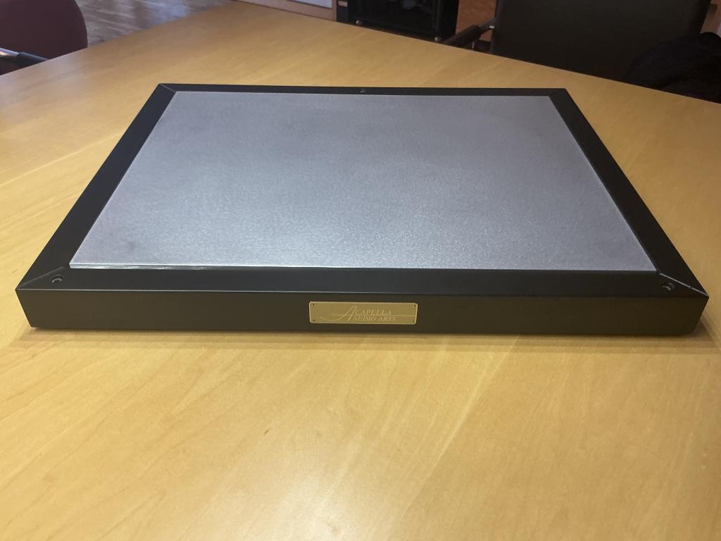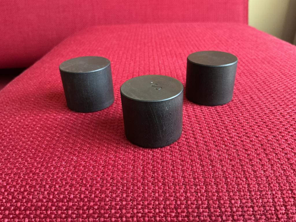 incl. der mitgelieferten vier Alu-Pucks zur Ankopplung an die Acapellla Basis und der originalen Transportkiste. Zusätzlich lege ich noch 3 Hartholz-Pucks (schwarz) bei. Bei einen der 3 Pucks erfolgt die Ankopplung über einen Silberstab an die Acapella Basis erfolgt.