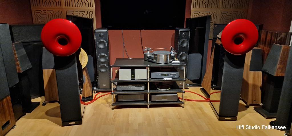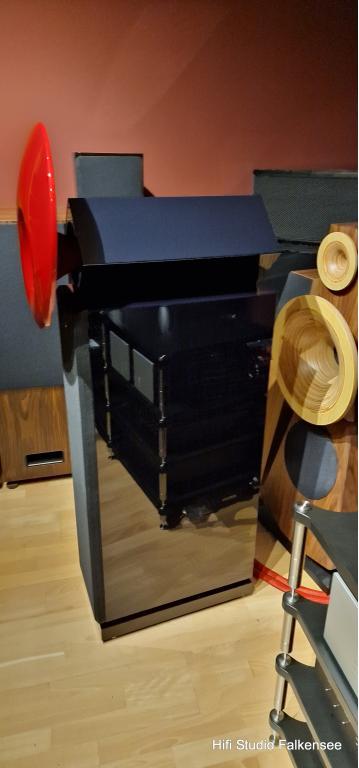 Ihr hypersphärisches Horn überträgt volle 4 Oktaven, gegenüber der für Hörner üblichen 3. Dadurch spielt der gesamte Mittel- und Hochtonbereich mühelos, schnell und präzise. Die Arbeit im Tieftonbereich übernehmen 4 parallel geschaltete Basschassis, die durch eine intelligente Ankopplung wie ein einziges großes funktionieren.