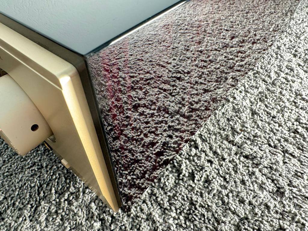Das Gerät befindet sich in einem guten Zustand, die Skalierung um den Lautstärkeregler ist abgenutzt und nicht mehr vollständig sichtbar. An der rechten Seite sind 2 kleine Druckstellen sichtbar.