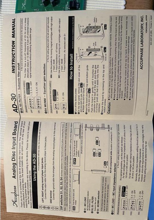 Selten genutzte, wahnsinnig detailreich und dynamisch klingende Phono Platine AD-30. Gegenüber z. B. der AD-10 ein deutlicher Klanggewinn. MC jetzt auch auf 300 Ohm einstellbar, für eine luftigere Wiedergabe. MM/MC je nach Verstärker von Amp aus wählbar. Keine weiteren teuren Kabel wie bei einem externen Preamp erforderlich und korrekte Phasenlage durch die Versorgung durch den Amp. OVP vorhanden. MC 30, 100 und 300 Ohm, Gain 66 dB, MM 47 Kiloohm Gain 40dB, Subsonicfilter -12dB Oktave einschaltbar.