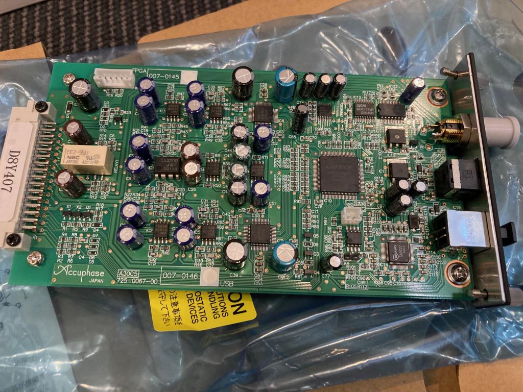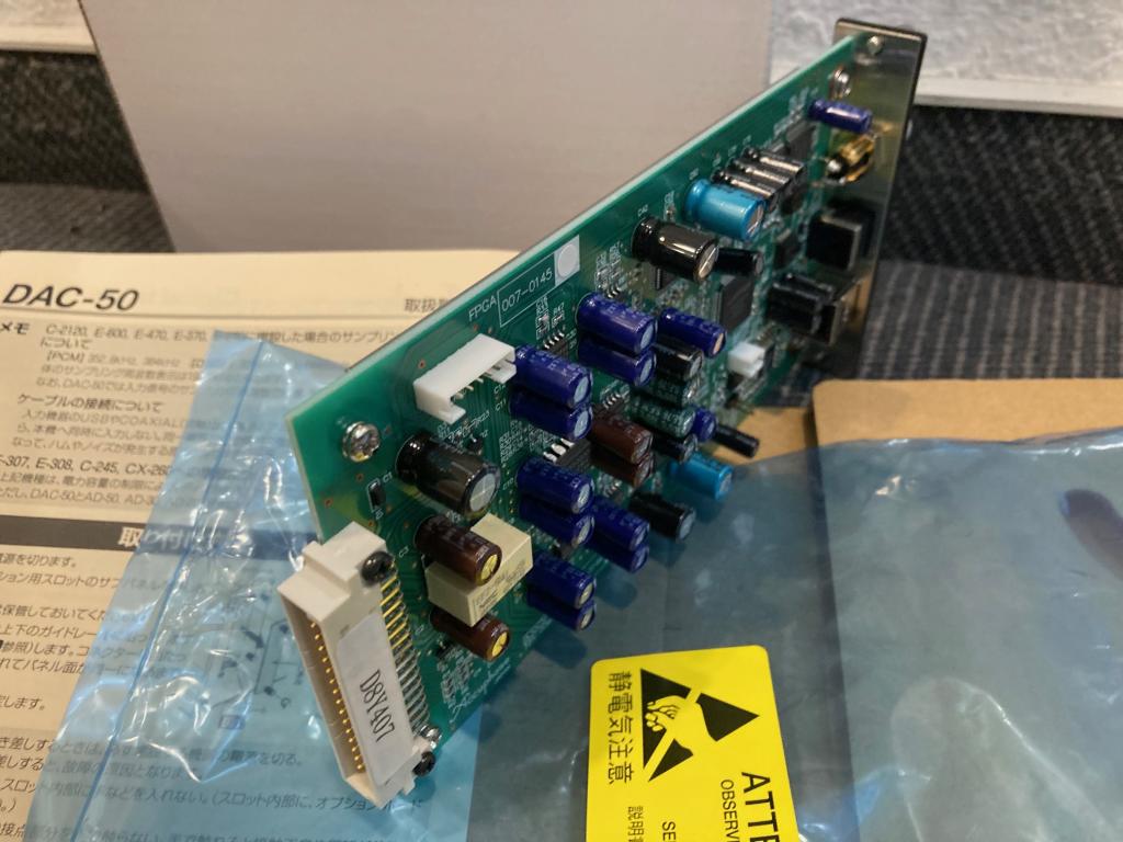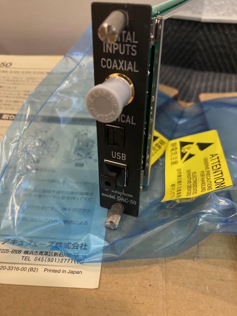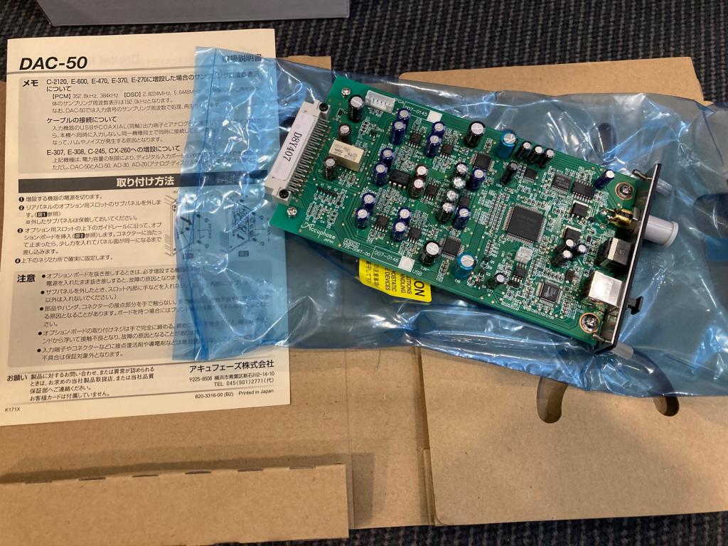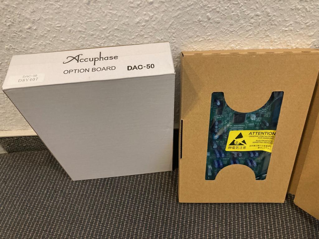 Das Accuphase Modul DAC-50 ist eine als Sonderzubehör erhältliche Digital-Eingangsplatine, die eine breite Palette von digitalen Signalquellen unterstützt und mit einem hochakkuraten MDS-Digital/Analog-Wandler ausgerüstet ist. Der Wandler verwendet AK4490EQ Chips von Asahi Kasei Microdevices in einer doppelt parallelen Konfiguration pro Kanal. Die DAC-50 ist kompatibel zu allen Vollverstärkern und Vorverstärkern mit einem Optionsbord-Anschluß. Die hier angbeotene Platine stammt aus 1.Hand und ist technisch wie optisch einwandfrei, die wurde am 30.04.2018 bei uns für UVP € 1.260.- gekauft.Mitgeliefert wird die OVP+Anleitung.