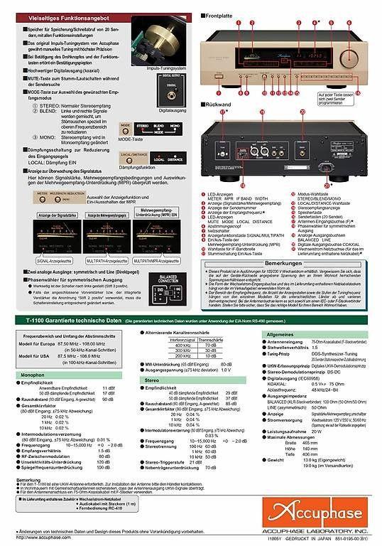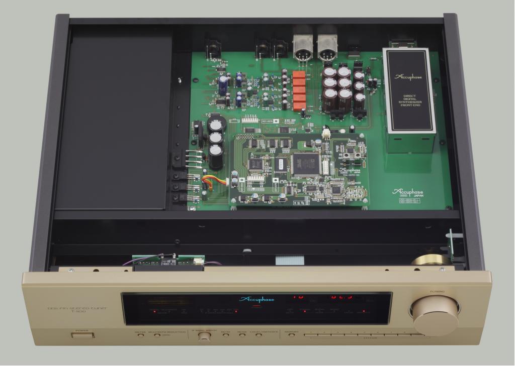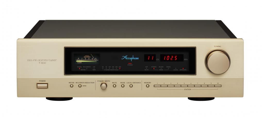 High End Tuner von Accuphase T-1100, eingebauter A/D- Converter AD1955 (Analog Devices). Rauschabstand Stereo 85 dB (Nachfolgermodell T-1200 Rauschabstand Stereo nur 78 dB) Top Zustand mit Metall Fernbedienung und Bedienungsanleitung. CH-Gerät. NP war SFr. 6900.- Über Digital Ausgang Klang auf CD Niveau. Über Digital Ausgang kann T-110 Direkt an Accuphase DP-570 angeschlossen werden. Accuphase DP-570 und Endverstärker in anderen Inseraten von mir