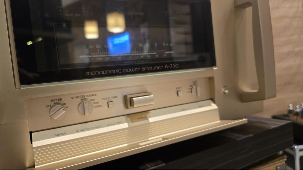 The Giant Accuphase M-250 monoblocks amplifier at 100w class A in superb condition 5 years used only 9/10 box include