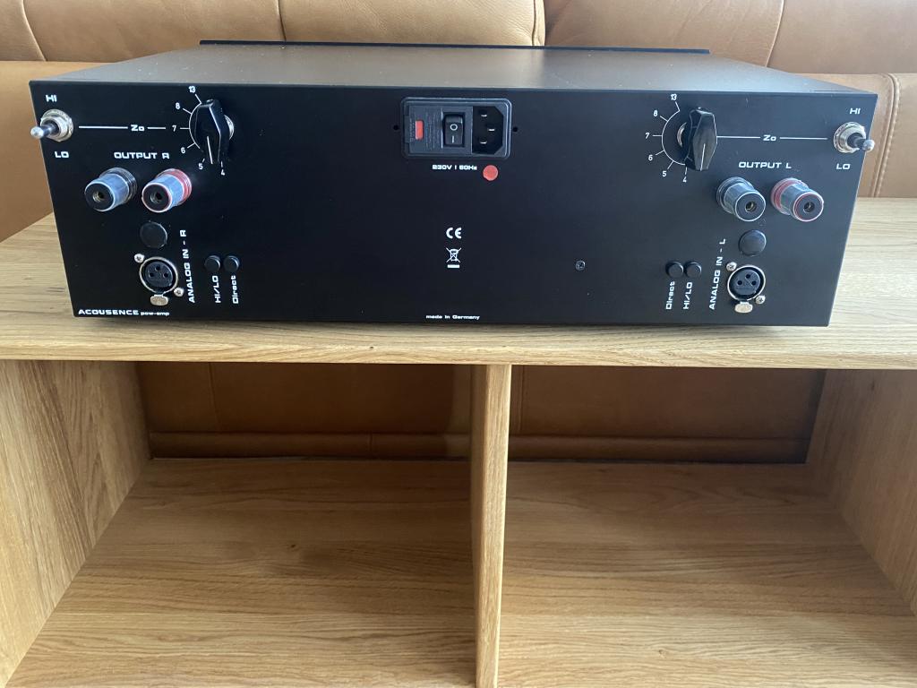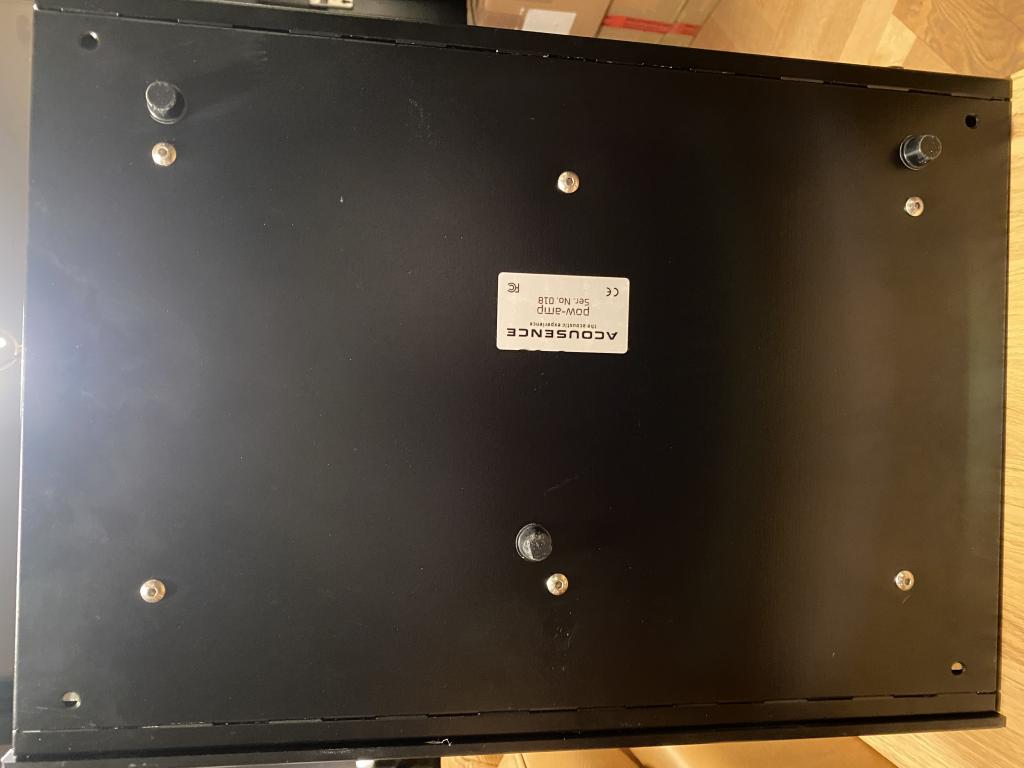 Verkaufe meine 2 Jahre alte Endstufe von Acousence (Class D). Das Gerät befindet sich in einem sehr guten Zustand. Es hat auf der Oberseite im hinteren Bereich zwei kleine Kratzer.
