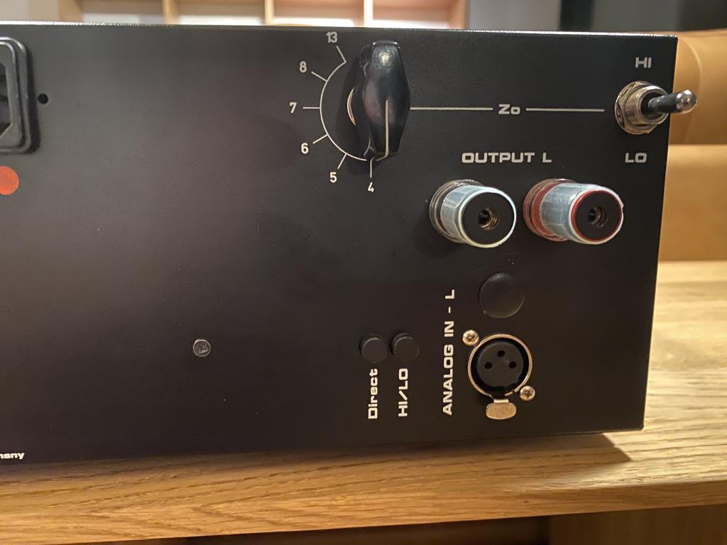 Die Endstufe hat symmetrische Anschlüsse. Die Möglichkeit der Impedanzapassung ist ein wesentliches Feature, welches eine optimale Anbindung an die unterschiedlichesten Lautsprecher ermöglicht.