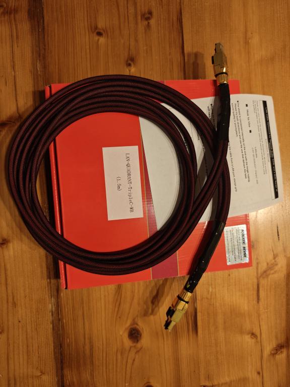 I am offering Acoustic Revive Quadrant-Triple-C WB 1 m and 1,5m LAN cables in the latest version and in absolutely top condition for sale. The cables comes from a non-smoking household, has been treated with great care and is technically as well as cosmetically flawless.
