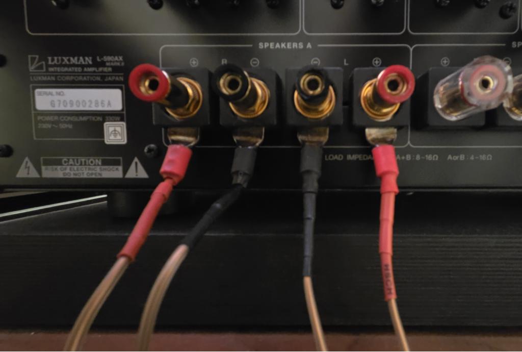 Verstärkerseite: Original Konfektionierung mit Spaten, LS-Seite mit verschraubbaren Bananas