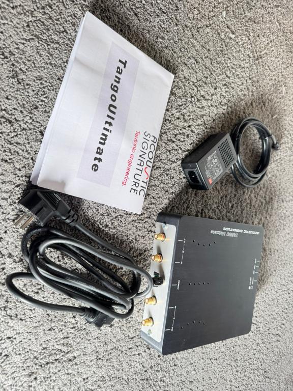 Im Lieferumfang enthalten ist: Acoustic Signature Tango Ultimate, kleines Netzteil, Anleitung und die originale Verpackung.