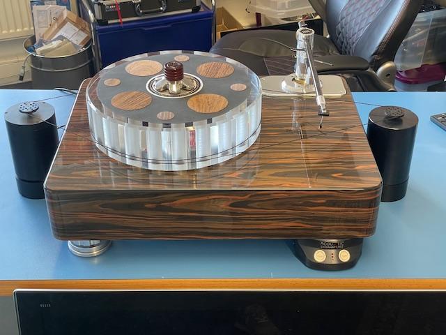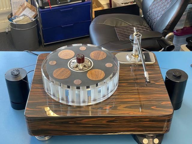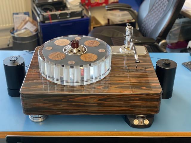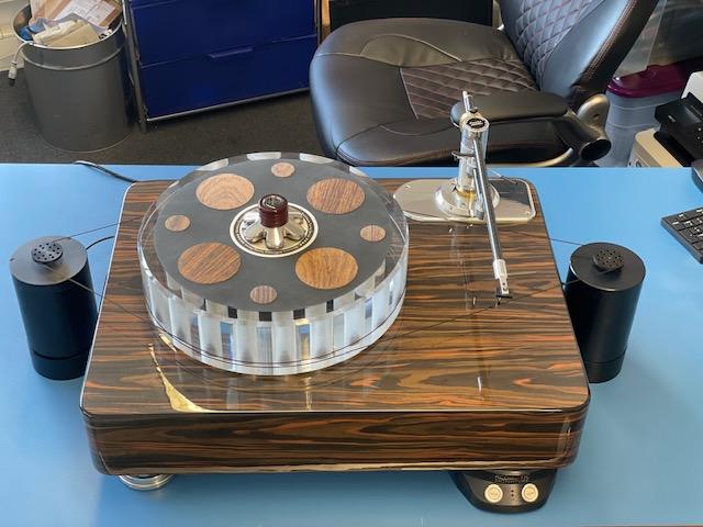 Spezial Kohlefaser Tonarm von kleiner Edelschmiede gebaut Lager und Teller sind auch speziell entwickelt. Ebenfalls die höhenverstellbaren Füße. Der Klavierlack 6 Schicht aufgetragen.