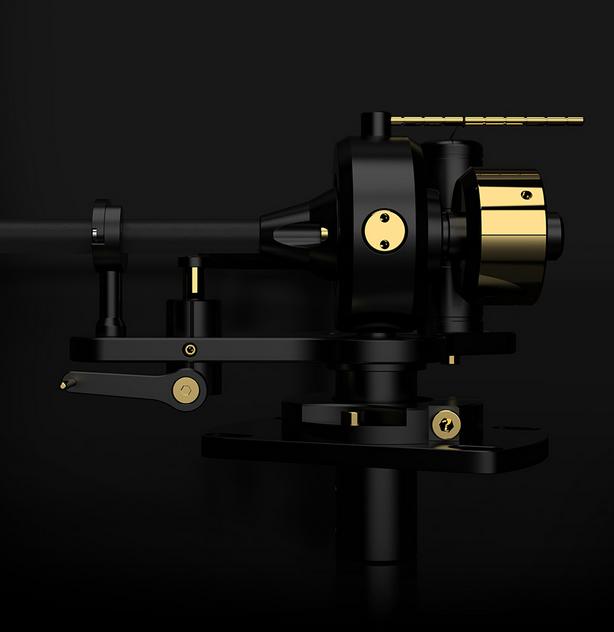 Tonarm: Schwarz (eloxiert, optional: Gegengewicht in 24K goldbeschichtet),