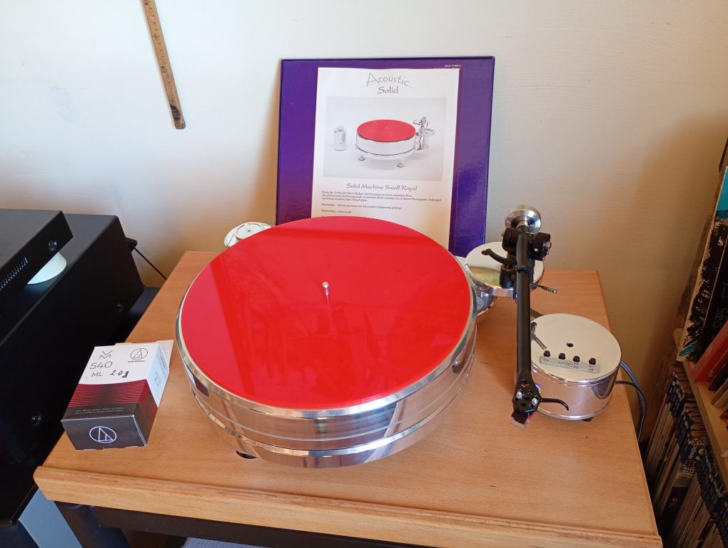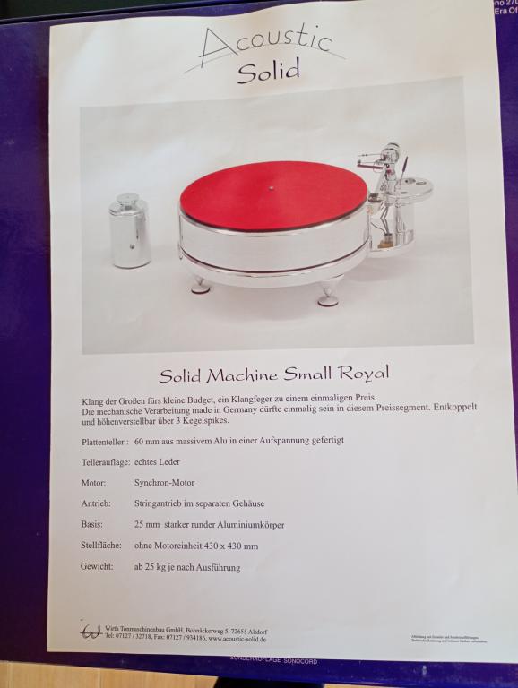 In Kommission für einen langjährigen Bestandskunden abzugeben ist der vollständig ausgestattete Plattenspieler SOLID MACHINE SMALL vom deutschen Hersteller ACOUSTIC SOLID in einem voll funktionsfähigen und optisch einwandfreien Zustand Alu Hochglanz poliert.