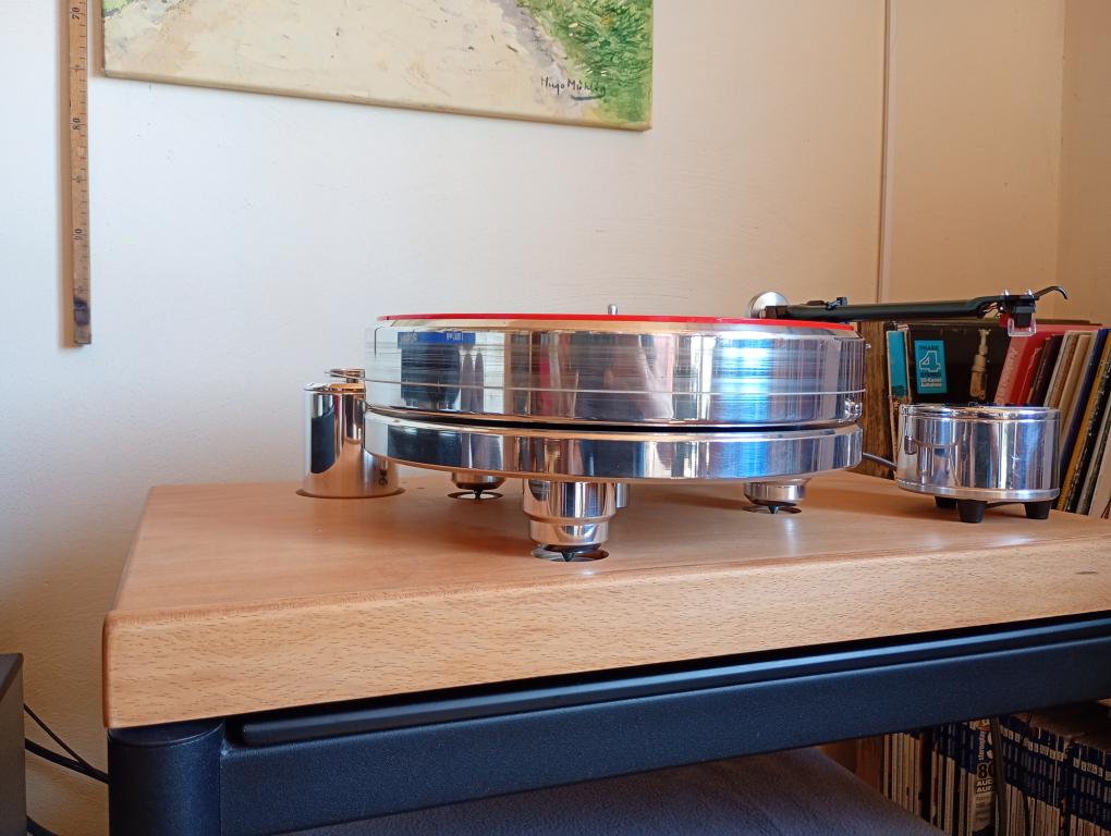 Bei Bedarf kann die eigens für das Gerät angefertigte Aufstellbasis aus doppelter Buche-Multiplex-Platte und Entkopplungselementen kostenlos mit übernommen werden.