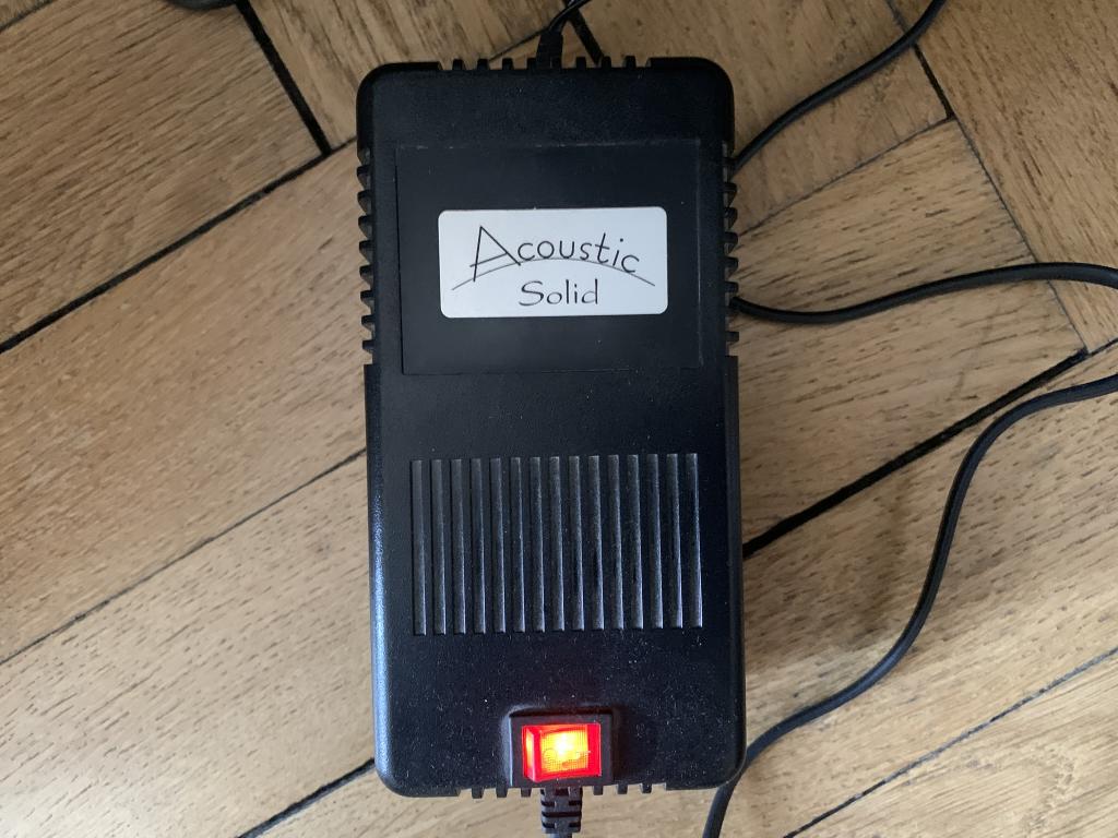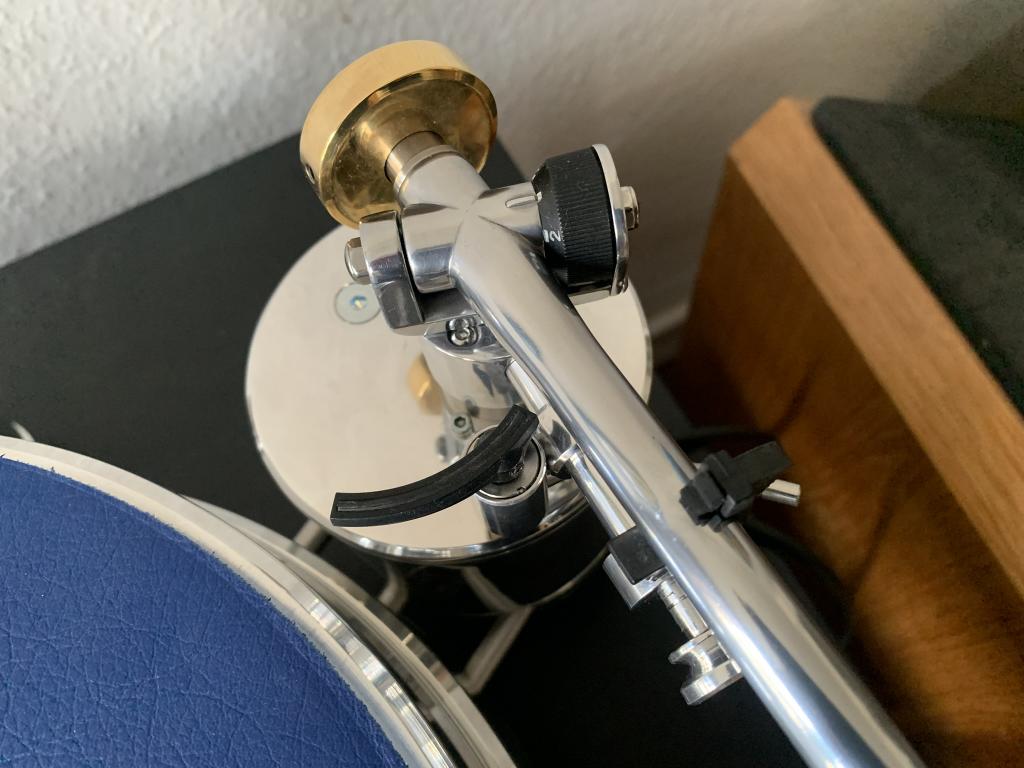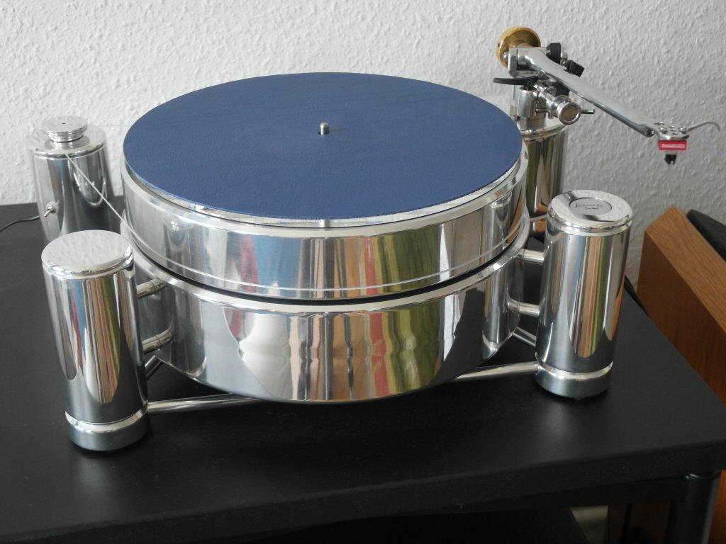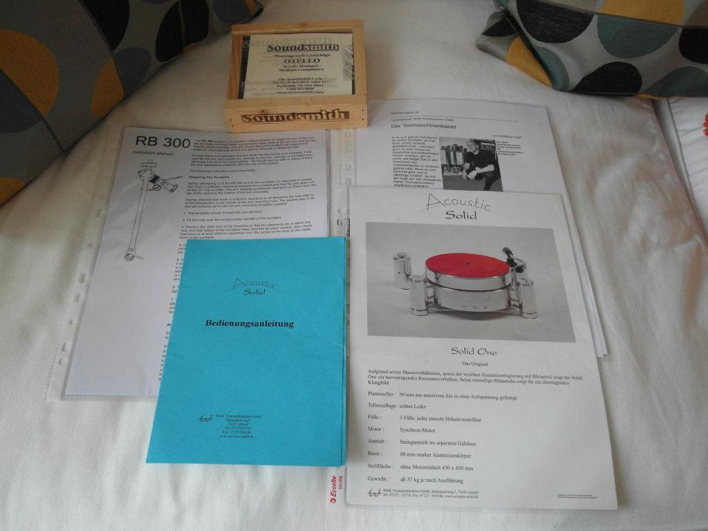 Hervorragendes Masselaufwerk in klanglich und optisch wunderschöner Ausstattung mit Chrom-Spezialversion des Rega RB 300 Tonarms und Soundsmith Otello Tonabnehmer. Sehr gepflegter Zustand mit exzellentem, problemfreiem Lager. Inkl. originaler Bedienungsanleitung und Originalverpackung. Karl Wirth mit seiner schwäbischen Firma Acoustic Solid hat mit diesem Laufwerk seinen Erfolg begründet. Auf Grund seiner Masseverhältnisse sowie der weichen Aluminiumlegierung mit hohem Bleianteil zeigt der Solid One ein hervorragendes Resonanzverhalten. Seine einmalige Abtastruhe sorgt für ein überragendes Klangbild. Der rega-Arm ist ein hochwertig überarbeitetes Modell mit mechanischen Feinarbeiten und eine neuen Verkabelung. Innen wurde teflonisoliertes 99,999+ % Silberlitzenkabel verwendet. Der Erdungsdraht ist nicht mit dem linken Minuspol verbunden, was bei Rega-Armen Standard ist, sondern Extern ist ein Mogami-Kabel mit WBT-Verriegelungssteckern. Alle Lötstellen wurden mit WBT-Silberlot hergestellt. Der Tonabnehmer Soundsmith Otello (NP 800€) ist ein amerikanisches Moving Iron System und erst wenig gelaufen. Sein warmer, kräftiger Klang in Kombination mit hoher Detailauflösung und einer enormen Dynamik ermöglicht stundenlangen Musikgenuss mit jeder Art von Musik.